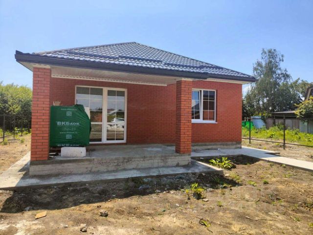 АКЦИЯ! ЦЕНА СНИЖЕНА! На Новый готовый коттедж в станице Елизаветинской, Прикубанский округ, Краснодара, прописка городская. Дом расположен на территории СНТ "Фруктовый", садовое товарищество закрытого типа, улицы широкие, главная дорога — асфальтированная, тротуары, на территории — оборудованная детская площадка, два магазина. Возле садового товарищества — новый супермаркет "Магнит", аптека. К самому СНТ "Фруктовый" ведет полностью асфальтированная новая дорога! От дома до остановки общественного транспорта и школьного автобуса — 5 минут ходьбы. Дом возведен на свайно-ростверковом фундаменте, материал стен — газоблок, наружные — керамический славянский кирпич, металлопластиковые окна с декоративной раскладкой, кровля — металлочерепица, качественные входные двери. В доме общей площадью 88,4 кв.м. комфортная планировка: холл 13,4 кв.м, три спальни, кухня-гостиная 27,4 зонирована на зону приготовления пищи и гостевую зону 17 кв.м, санузел совмещен 5,5 кв.м, котельная 4,2 кв.м, можно сделать два санузла. Коммуникации: электричество 5 кВт, вода — скважина, канализация — септик 8 куб.м. В доме — предчистовая отделка: стены оштукатурены, стяжка пола, разводка всех коммуникаций, теплые полы — в местах общего пользования, радиаторы отопления, двухконтурный котел. Застройщик за допплату может выполнить ремонт под ключ, установить мебель. Участок 4 сотки, назначения СНТ, огорожен по периметру забором, откатные ворота, калитка. Придомовая территория забетонирована, парковочные места для автомобилей. Дом расположен в шаговой доступности от центральной дороги, широкие улицы, школьный автобус возит детей в новую школу. Дом готов. Ипотека обычная.