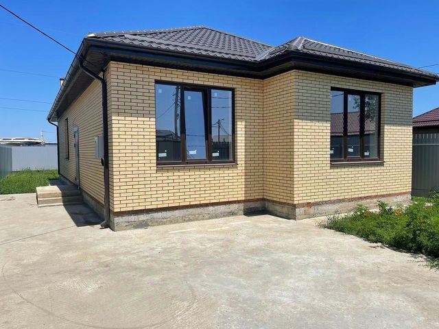 В ПРОДАЖЕ! Новый готовый коттедж в станице Елизаветинской. Дом расположен на территории садового товарищества Криница, это близлежащее СНТ от самой станицы. В шаговой доступности — супермаркет Магнит магазин фруктов и овощей, аптеки. Подъездные пути — асфальтированная дорога. До остановки общественного транспорта и школьного автобуса — 100 м. Дом расположен на участке 4 сотки земли, назначение земли СНТ, прописка городская (Прикубанский округ гор. Краснодара). Участок огорожен по периметру забором, фасадный — кирпичные колонны, евроштакетник, откатные ворота, калитка. Во дворе залита площадка под авто, сделана отмостка дома, есть место под палисадник. Коммуникации: вода — централизованное водоснабжение, канализация — септик 9 куб.м, электричество — 5 кВт, ведется газификация района. Планировка дома общей площадью 90 кв.м: крыльцо, прихожая, холл 13 кв.м, три изолированные спальни, кухня-гостиная 22 кв.м с выходом на крытую террасу 14 кв.м. В доме — предчистовая отделка. Дом готов. Льготная ипотека.