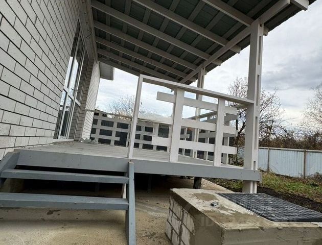 Дом построен из качественных материалов. С соблюдением всех строительных норм. Облицован керамическим кирпичом. С кухни есть выход на крытую террасу.