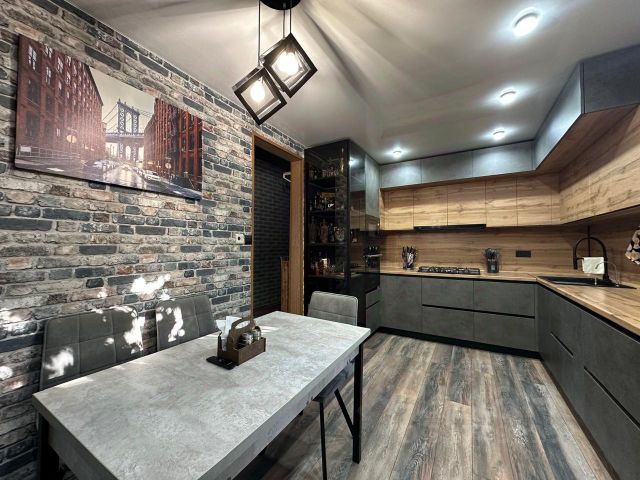 Дом в предчистовой отделке. Три комнаты и большая кухня-гостиная. В зонах общественного пользования сделан теплый пол (коридор, санузел и кухня-гостиная).
