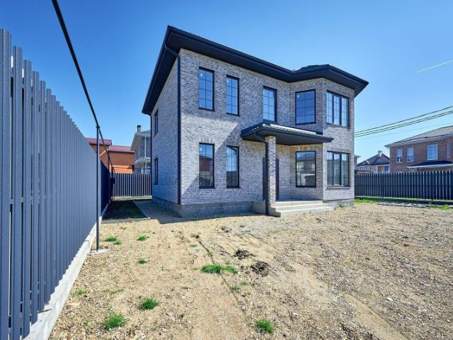 В продаже — новый кирпичный коттедж микрорайоне Горхутор. Дом расположен в престижном жилом массиве Краснодара — Горхутор, микрорайон за ТРЦ "Красная Площадь". Район с частными домами и никакой многоквартирной застройки вокруг. Отличное местоположение, широкие асфальтированные зеленые улицы, уличное видеонаблюдение. Соседние дома — современные коттеджи и особняки. Двухэтажный коттедж возведен в по индивидуальному проекту в стиле хай-тек, полностью из кирпича, большие металлопластиковые окна с внешней ламинацией, мягкая кровля, крытая терраса. Отделка базовая. Отличная планировка, комфортная для проживания семьи с детьми: на первом этаже — крыльцо, прихожая, холл, котельная, санузел, гостевая спальня 14,74 кв.м, кухня-гостиная 33,6 кв.м с выходом на крытую террасу 18 кв.м, кладовая, лестница на второй этаж монолитная. На втором этаже — холл 5,7 кв.м, санузел, три изолированных спальни, одна из которых мастер-спальня 22,45 кв.м со своим санузлом и гардеробной, санузел. Дом расположен на земельном участке 5,5 соток земли, назначения ИЖС. Коммуникации: свет 15 кВт, вода — скважина 30 м, газ — по меже, видеонаблюдение. Дом расположен в тихом месте, улица широкая заасфальтированная, район обжитой, рядом все заселены. До ТРЦ "Красная площадь" — 5 минут на автомобиле, до школы — 10 минут. Напротив жилого массива — Город спорта, "Баскет холл". Все магазины, рестораны, аптеки, салоны красоты — в близлежащем окружении. Продажа от собственника. Обременений нет. Продам дом в микрорайоне Горхутор в городе Краснодар.