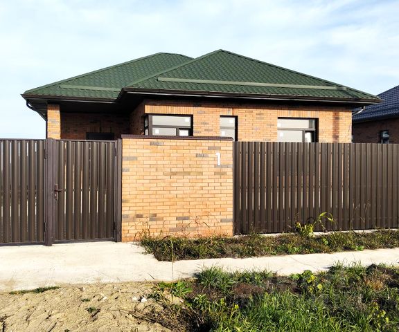 В продаже — новый коттедж в поселке Индустриальный. Хорошие подъездные пути, развитый микрорайон, по соседству — коттеджные поселки. Одноэтажный коттедж общей площадью 90 кв.м комфортной для проживания семьи планировки: холл 10 кв.м, три изолированные комнаты, санузел, котельная, кухня-гостиная 26,5 кв.м с выходом на задний двор. Коттедж — в качественной предчистовой отделке. Коммуникации: свет 15 кВт, 3 фазы, вода — скважина, канализация — септик 8 куб.м, газ — по меже, подключение самостоятельное. Дом расположен на земельном участке 3,2 сотки земли, назначения ИЖС. Есть возможность обустроить зону барбекю, высадить деревья, разбить ландшафтный дизайн. Участок огорожен по периметру забором, фасадный — с кирпичными колоннами, евроштакетник, откатные ворота, калитка. В поселке Индустриальный развитая инфраструктура: магазины, супермаркеты "Магнит", "Пятерочка", "Агрокомплекс", поликлиника, муниципальный детский сад 43, средняя общеобразовательная школа 62. В шаговой доступности — остановки общественного транспорта: автобусы и маршрутные такси 146А, 151А, 170А. Льготная ипотека без удорожания стоимости дома. Больше информации, видео, планировка — по запросу.