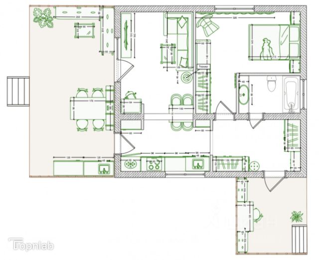 Общая площадь _98,7_м2 - огромная кухня-гостиная в 27 кв.м., просторная прихожая, 3 отдельные комнаты, санузел 7 кв.м.., с возможностью сделать полноценную мансандру в 40 кв.м. (выход на чердак имеется).