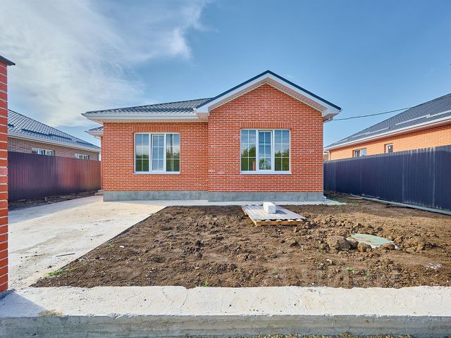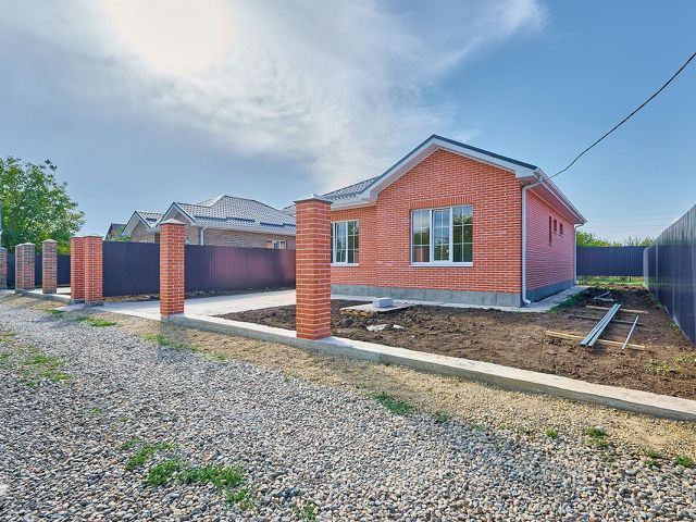В ПРОДАЖЕ! Новый готовый коттедж в станице Елизаветинской, Прикубанский округ Краснодара, прописка городская. Дом расположен на территории СНТ "Кубанская нива-2", это район новой застройки станицы Елизаветинской. Подъездные пути к дому — полностью асфальтированная дорога, что большая редкость для садового товарищества. В шаговой доступности — магазины, пункты маркет-плейсов, остановка общественного транспорта. Школьный автобус возит детей в новую школу 75. Одноэтажный коттедж общей площадью 100 кв.м расположен на земельном участке 6 соток. Предчистовая отделка: разводка всех коммуникаций, теплый пол, стяжка, стены оштукатурены, радиаторы отопления. Современная планировка: крыльцо, холл, три спальни, кухня-гостиная 30 кв.м с выходом на крытую террасу, санузел 6 кв.м, котельная — вход с террасы. На террасе — готовая мангальная зона. Коммуникации: вода — скважина, электричество, канализация — септик, Интернет, за доплату застройщик может установить газгольдер. Забор — по периметру участка, откатные ворота, калитка. Льготная ипотека с удорожанием стоимости дома.