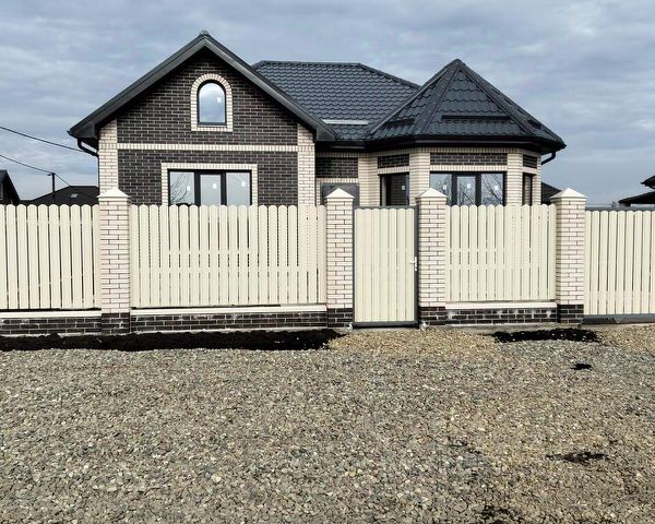 Дом двухэтажный 69 м², кирпичный, крепкий, тёплый, межэтажные перекрытия бетонные. Есть большой подвал с возможностью загнать машину. Дверь железная, окна деревянные, на первом этаже установлены решётки.