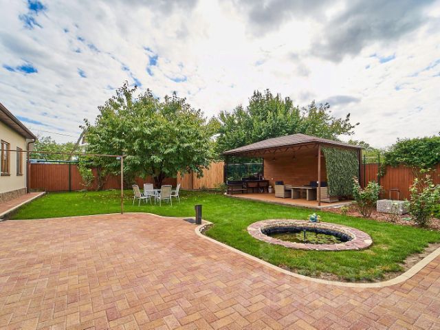 Земельный участок 9 соток с правильной эргономикой: Основной дом280м2 в 2х этажах, гараж 71м2 на 3 машиноместа с въездной группой фирмы Херманн и два парковочных места. Перед фасадом дома разбит молодой виноградник. На заднем дворе расположены Гостевой дом 83,5м2 и Баня 23 м2, Зона барбекю с мангалом и беседкой для отдыха, небольшой пруд и современная зеленая зона с ландшафтным дизайном, есть место под Бассейн. Коммуникации все Центральные, На участке имеется автополив, при въезде автоматические ворота.