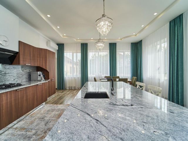 В доме выполнен Ремонт из дорогостоящих материалов Европейских производителей (кухонный гарнитур и осветительные приборы в доме производства Италии, столешница, фартук кухни и острова выполнены из натурального камня Индия. Сплит системы фирмы General. Лестничные перила художественная ковка мастера международного уровня. Двери из массива ясеня. По периметру первого этажа система тёплый пол. Дом очень светлый, просторный, Продуманный дизайн. Вся Мебель и Техника остаются Новым хозяевам.