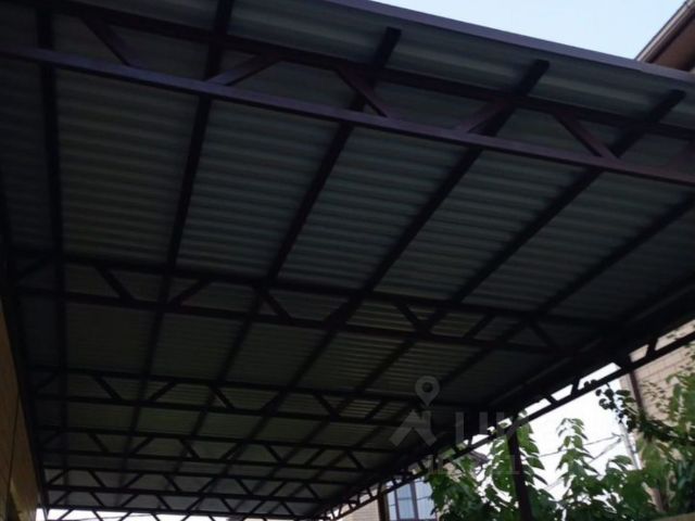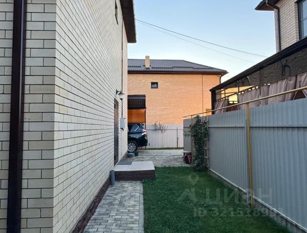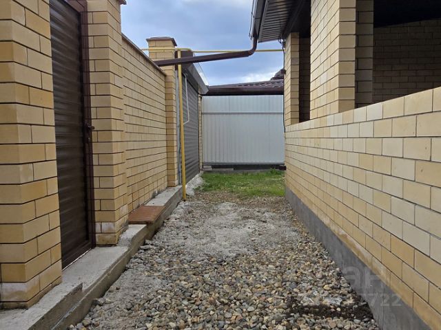 Во дворе уложена брусчатка, есть навес для двух автомобилей, хозблок. С кухни выход на террасу с мангалом и печью.