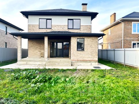 В продаже — новый кирпичный дом на завершающей стадии готовности в микрорайоне Немецкая деревня, Прикубанский округ города Краснодара. Двухэтажный коттедж расположен в коттеджном поселке "Зеленая долина-1". Отличные подъездные пути, асфальтированная дорога к самому дому. Тихое место, обжитой район, современные коттеджи и особняки — вокруг. Дом возведен на ленточном фундаменте, материал стен — газоблок, перегородки кирпичные, облицован керамическим славянским кирпичом, кровля — металлочерепица, энергосберегающие окна, качественные входные двери. Коттедж общей площадью 130 кв.м современной планировки: первый этаж — крыльцо, прихожая, гостевая спальня 11,3 кв.м, кухня-гостиная 25 кв.м с выходом на крытую террасу, санузел 5,2 кв.м, котельная — вход с террасы, лестница на второй этаж монолитная. На втором этаже — холл, санузел, три комнаты. Коттедж в базовой отделке Дом расположен на земельном участке 3 + 1 сотка (зона отчуждени) сотки земли, назначения ИЖС. Участок огорожен по периметру забором, роллетные ворота, калитка. Двор благоустроен, забетонирован, паркоместа для двух автомобилей. На заднем дворе можно обустроить зону отдыха, барбекю, уютный дворик патио, разбить ландшафтный дизайн. Коммуникации: свет —три фазы 15 кВт, канализация — биосептик ЕВРОЛОС ПРО 4+, вода — скважина, центральная и газ — по меже. Большая зона отчуждения, широкая улица, до Немецкой деревни — 700 м, рядом — школа, детский сад. Дом готов. Документы готовы к продаже. Возможна покупка дому с использованием средств льготной ипотеки. Купить дом на проспекте Римский в городе Краснодар.