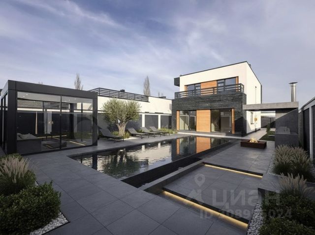Двухэтажный коттедж возведен в современном архитектурном стиле по индивидуальному архитектурному проекту, согласно всех СНиПов и строительных норм: стены — забутовочный кирпич, наружные — облицовочный кирпич, большие металлопластиковые окна REHAU с внешней ламинацией, кровля — гибкая черепица.