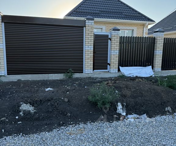Участок правильной квадратной формы, с большой территорией заднего двора за счет правильного расположения дома. По периметру дома сделана отмостка. Ворота откатные.