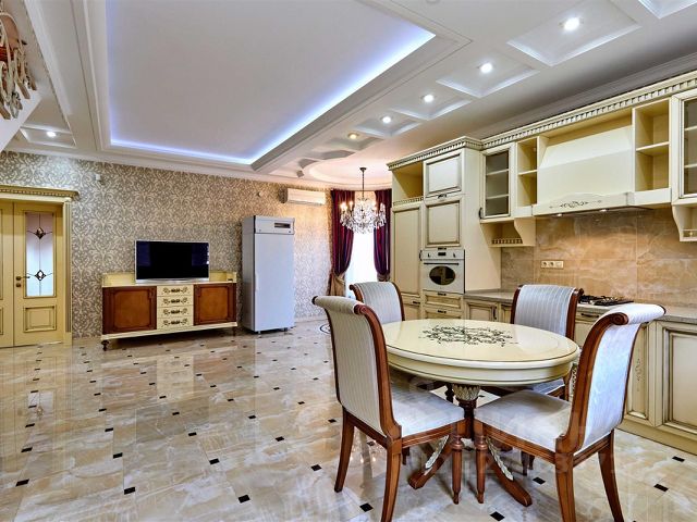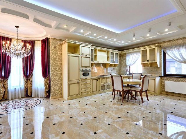 Дом выполнен по авторскому дизайн-проекту MARCH DESIGN город Санкт Петербург. Детали интерьера нестандартные, эксклюзивные, изготовлены по эскизам архитектора специально для этого дома. Альфрейная роспись по Флорентийским мотивам, высокие потолки, антикварная мебель. В отделке использованы: камень, дерево, стекло, травертин, известково-декоративная штукатурка на потолки и стены .