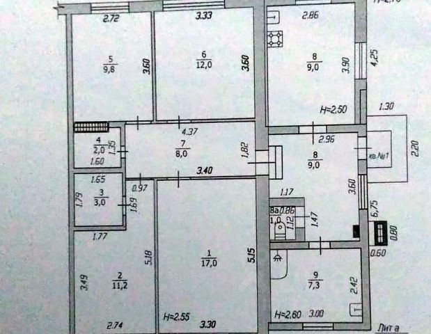 4 светлые и просторные комнаты по 10, 11, 12 и 17 кв.м., кухня 11 кв.м., с/у раздельный, ванна 7 кв.м., гардеробная 3 кв.м, кладовая 2 кв.м., коридор 8 кв.м.