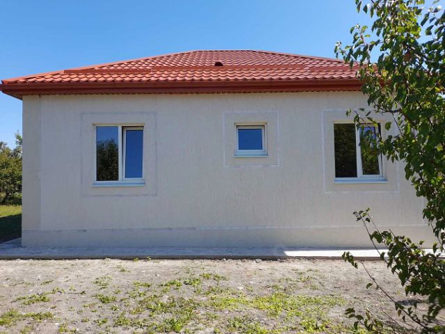 Арт. 58011650. Дом продается в Краснодарском крае станица Раевская. Станица расположена в 20 км от Новороссийска и в 30 минутах езды до Анапы. Станица большая с развитой инфраструкторой. Две школы, музыкальная школа, два государственных садика, частные, больница, спорткомплекс, стадион, множество детских площадок, парк. Есть большое количество магазинов, супермаркетов, Willbеrriеs, Оzоn, рынок и ярмарка. Также ходит общественный транспорт, как по Раевской, так и в Новороссийск, Анапу и ближайшие курорты Краснодарского края. В шаговой доступности от дома находятся продуктовые и хозяйственные магазины, остановка общественного и школьного транспорта. Переулок частично газифицирован, у соседей есть газ. Дорога на улице бетонная и отсыпанная. Весь переулок жилой. Дом построен в 2021 году, одноэтажный, 80 кв. м, стены блок керамзит 20 см, ленточный фундамент, плита, колонны, утепленные перекрытия 150 мм, фасад утеплен, ППС 25 ф. 80 мм. Проводка, свет 15 кв, отопление, окна большие (отличного качества, 70 мм профиля), хорошая металлическая входная дверь, есть скважина 100 м, стоит насос. ВОДА есть. В доме две спальни, высота потолка 3 метра, огромная гостинная, коридор, санузел. При желании можно сделать третью изолированную спальню. Окна спален выходят в сад с фруктовыми деревьями 4-5 лет (слива, яблоки, вишня, черешня, персики, орехи), которые уже дают урожай. Участок 5 соток, есть заборы межевые от соседей, большая придомовая территория. Звоните, отвечу на все вопросы, проведу показ. Помогу с одобрением ипотеки