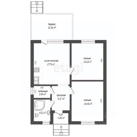 Дом 111м2, на 4,1 сотках Дом с 3-мя спальнями Дома расположен на земельном участке площадью 411 м2, ИЖС. Размеры дома 11 м на 9,5 м, общая площадь дома с крыльцом и террасой 111 кв.м., общ. площадь дома без крыльца и террасы 88 кв.м., жилая площадь 40 кв.м. В доме: - три жилые комнаты 12,4 кв.м.; 12,4 кв.м. и 14,1 кв.м., - кухня-гостиная 26,7 кв.м., - сан. узел совмещенный 4,6 кв.м., - котельная 5,5 кв.м., - коридор 12,3 кв.м. Хутор Семигорский - это комфортное место для жизни в гармонии с природой, окружённый горами и лесами. Расположение: в 30-ти минутах от г. Новороссийск (22 км) и г. Анапа (28 км), до ст. Раевской 6 км и ст. Натухаевской 2,5 км. Инфраструктура: В поселке находится одна из самых ухоженных и современных виноделен России, а также базы отдыха, колоритные рестораны и авторские сыроварни, здесь есть детский сад, Дом культуры, амбулатория, почта, магазины, а также казачья школа в шаговой доступности от домов. Данное место прекрасно подходит для тех, кто ценит тишину, покой, не любит городской суеты. проект: 537240