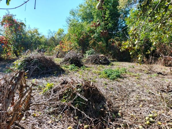 деревья, виноград и прочие ягоды, домик обшит и можно проживать, внутри также отделан. кухонька отдельно стоит. есть электричество, скважина прокачка, можно пить. 300метров от остановки автобуса( маршрутки), там же и магазины. Соседи вокруг с жилыми домами. Цена обсуждаема