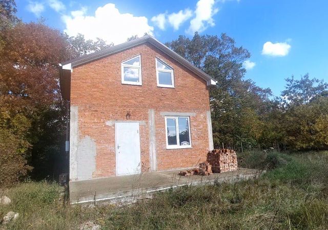 Дом построен из качественных материалов. Отделан керамическим кирпичом .Из коммуникаций в доме есть : свет 15 кв, газ проходит по меже , скважина. Дом полностью из кирпича.