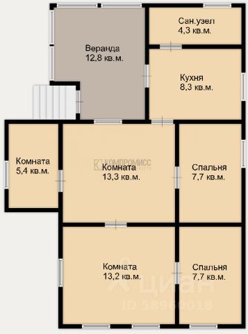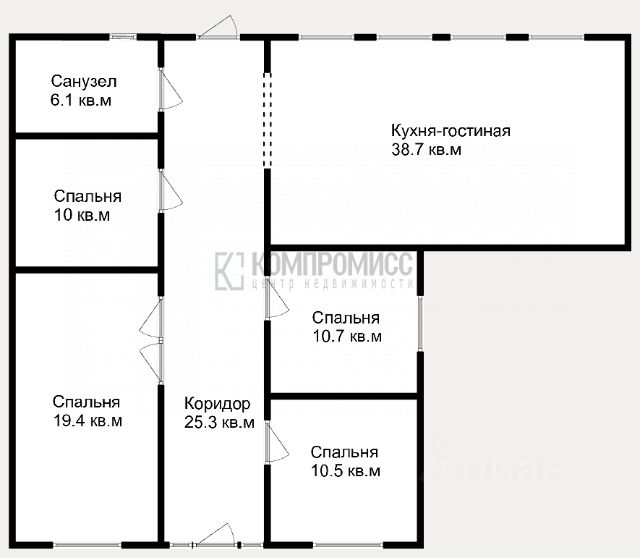 Дом площадью 74,8 кв.м. на земельном участке 6 соток. В доме четыре жилые комнаты, из них две изолированные, кухня, веранда, санузел, кладовая.