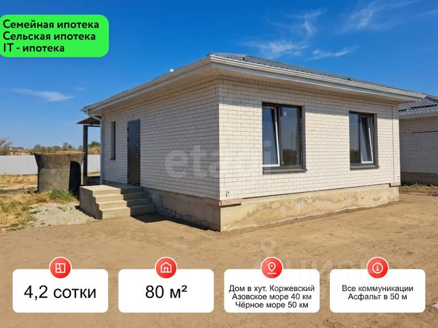 Просторный новый дом площадью 60 кв. м расположен в поселке Коржевский на благоустроенном участке 4,5 сотки. Объект с черновой отделкой, что позволяет новым владельцам самостоятельно выбрать стиль и материалы для чистового ремонта. Планировка включает 2 отдельные комнаты, совмещенную кухню-гостиную и санузел. Участок подключен к необходимым коммуникациям: водоснабжение организовано через скважину, канализация — автономный септик, магистральные сети проходят по улице. Поселок Коржевский отличается развитой инфраструктурой: в пешей доступности находятся школа 19, детский сад 31, продуктовые магазины Пятерочка, Магнит , сельскохозяйственный рынок, столовая , парк, Дом культуры,остановка общественного транспорта обеспечивает удобную связь с соседними населенными пунктами. Для любителей природы и активного отдыха вблизи расположен Курчанский лиман, известный рыбалкой и живописными видами. Близость к морю добавляет объекту инвестиционную привлекательность — Азовское побережье доступно в 30 минутах езды, а Черное море — в часе. Объект от собственника , без обременений, документы готовы к сделке. . Дополнительно оплачивается комиссия с покупателя. Код пользователя: 179400 Номер в базе: 8897954