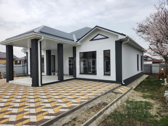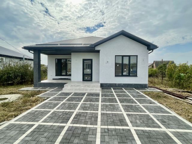 В продажи абсолютно новый дом, окончание строительства июль 2024года, ИНДИВИДУАЛЬНЫЙ ДИЗАЙН, дом продается готовый и мебелированый, с встраиваемой техникой и с сантехникой, по периметру забор из профнастила, с фасада забор из габионов, дизайнерские откатные ворота с автоматикой алютех, так же установлено видеонаблюдение, Ip домофония