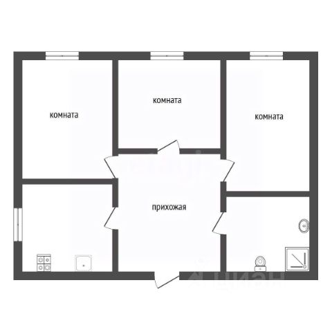 Планировка прихожая, кухня-гостиная, 2 спальни, санузел.
