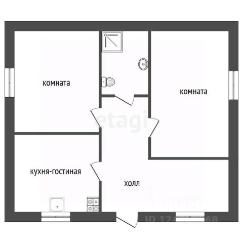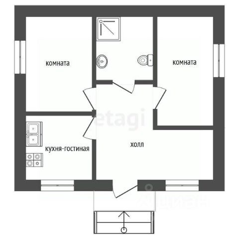 Планировка прихожая, кухня-гостиная, 2 спальни, санузел.