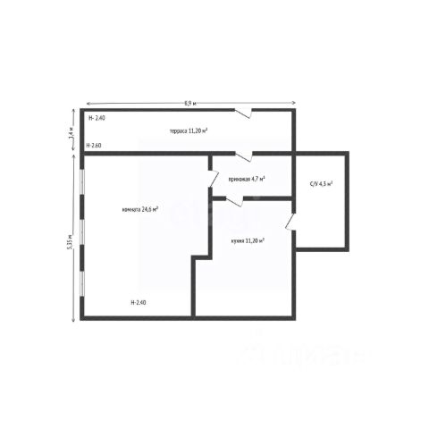- в доме размещены : спальная комната , кухня-гостиная , санузел , гардеробная + хоз.помещение .