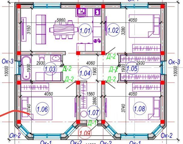 Общая площадь: 60 кв.м + пристройка 17 кв.м
