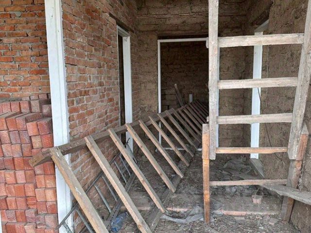 В доме пять комнат. Материал стен - саман, облицован кирпичом. Дом требует капитального ремонта.