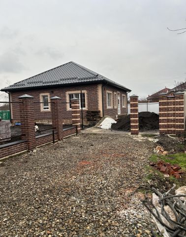 Продаю Новый, Дом (в процессе подключения газа)площадью 132 (вместе с террасой)кв.м. от собственника. Принадлежит на праве собственности застройщику ИП.Земельный участок 7,3 сотки подходит для создания как сада, так и огорода, также подходит для размещения вспомогательных построек. Земельный участок огражден по всему периметру забором из металлического профиля, по фасаду кирпичными колоннами с наполнением на Ваш выбор (предлагаем евроштакет), а с одной стороны панорамной 3Д сеткой (Вид на поле и лесополосу). откатные ворота и калитка под автоматику. Бетонный септик глубиной 2.5 метра расположен на земельном участке. Дом построен на железобетонном ленточном фундаменте, залита железобетонная плита, стены выполнены из шлакоблока, и облицованы ординарным кирпичом ручной формовки BAKSTEEN, под черный шов. Большие окна с двойным стеклопакетом, открытием в двух положениях, москитными сетками и энергосберегающей отражающей мульти -плёнкой во всех комнатах. 2-ух скатная крыша покрыта металлочерепицей от производителя в соответствии с ГОСТом, утеплена двойным слоем минеральной ваты. Сделана бетонная отмостка по периметру всего дома. Забетонирован въезд для автомобиля на придомовой территории. Забетонирован двор и отсыпана придомовая территория . Имеется огромная терраса 32 кв.м. с четырьмя кирпичными колоннами. Подключен центральный водопровод (вода с артезианских скважин). Электричество - три фазы, : 15кВт; выполнена разводка электрики по дому. (предусмотрена подсветка потолка, стен, бра, точечников люстр, подсветка встроенной мебели). Имеется силовая розетка на щитке 380 кВ., предусмотрена разводка для стабилизаторов. Подсветка дома , колонн,забора, террасы. Газ в процессе подключения, дом будет отапливается турбовым корейским котлом Navien 24кВт. Регулировка отопления (теплый пол и батареи) для каждой комнаты и террасы. Теплый пол проведен полностью во все помещения дома, (весь дом под теплым полом)! Планировка дома - 3 спальни,топочная (можно+санузел), санузел , совмещенная гостиная с кухней. На кухне предусмотрено размещение кухонного острова, подведена электрика для подсветки кухонной мебели. Панорамные двери на террасу. Внутренняя отделка: стены - штукатурка, шпаклевка, потолок обшит гипсокартоном, высота-2.90 м, механизированная стяжка пола. Входная дверь металлическая со стеклом. Выведены уличные краны с центральной водой для полива. Дом находится в шаговой доступности детского сада, школы 13, гипермаркета "Пятерочка" и других магазинов. Первая остановка в город Краснодар. До центра 20 минут пешком. Также 25 км до г. Краснодара, 20 км до Усть-Лабинска, 20 км до районного центра ст. Динской. Рядом река Кубань, озеро Плавни и другие водоемы.В станице имеется трасса для мотокросса международного уровня, исторический музей, дом детского творчества, парки, в том числе с бесплатной площадкой для большого тенниса, футбола, баскетбола и т.п. 2 часа до Черного моря. РЕАЛЬНОМУ ПОКУПАТЕЛЮ ТОРГ!!!