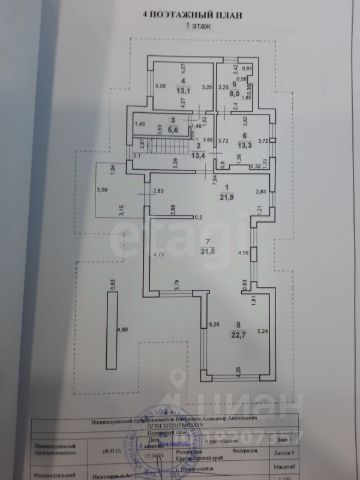 1 этаж: просторная кухня площадью 24,2 кв.м,, жилая гостиная площадью 28,8 кв.м., совмещенный санузел площадью 8,3 кв.м, прихожая-холл площадью 31,0 кв.м, подсобные помещения площадью 3,9 и 4,3 кв.м. Высота потолков 3,00 метра.