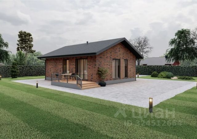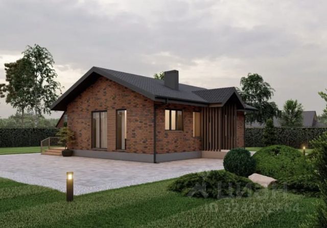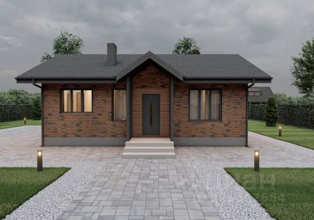 Дом возведен полностью из кирпича, высокий цоколь, металлопастиковые окна, кровля — металлочерепица, большая застекленная лоджия-веранда.
