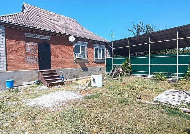 Продается одноэтажный жилой дом. Выполнен кап.ремонт. В доме произведена замена крыши, обложен кирпичём, установлены металлопластиковые окна, полы забетонированны и уложен ламинат. Выполнено новая разводка отопления, установлен навесной газовый котел "BAXI" и новая разводка электрики. В 2022 году подключено 15 кВ. Во дворе уложена плитка, за домом выполнен навес из мелаллопрофиля. Залит фундамент под подвал и летнюю кухню с цоколем. Подвал эксплуатируется 6х4м. Гараж 4х6м. Теплица 4х8м. В конце участка посажен молодой сад с фруктовыми деревьями (груша, яблоня, черешня, абрикос, персик, слива, вишня). имеются хозпостройки.