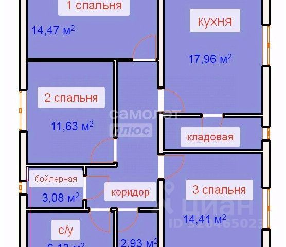 2) 3 спальни - 12,94 кв.м. + 14,45 кв.м. + 12 кв.м. +
