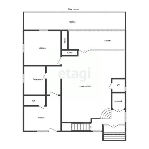 1-й этаж: просторная прихожая, гостиная, спальня, кабинет, столовая, санузел.