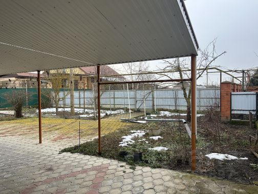 Продаю теплый, уютный дом, из красного кирпича, 63,6 м2, состоящий из 3-х комнат и прихожей, отопление газовое (котел расположен во времянке) заведена центральная вода, санузел, установлена сплит система мощностью на весь дом, отдельно стоящая времянка (саманная, оштукатурена) состоящая из жилой комнаты и кухни, совместного санузла и душевой кабинкой, два отдельно стоящих септика, кирпичный гараж для автомобиля, навес на всю длину дома, летняя кухня с навесом используется для заготовок овощей в зиму, хозпостройки (в том числе зимнее помещение для птицы), летний душ, два кирпичных сухих подвала для хранения овощей и заготовок в зиму, хоздвор уложен кирпичом, плодоносящий сад (яблони, груши, абрикосы, сливы, вишни, калина, кизил, смородина, крыжовник, шелковица - крупная и сладкая, виноград винный и столовый), огород ухожен, по всей длине земельного участка проложена в земле пластиковая труба для полива с выводом на поверхность через каждые 15 метров установлен кран для подключения к шлангам, есть возможность разделить участок по фасаду под строительство второго дома. Торг уместен. Купить дом с газом в Калининском районе Краснодарского края.