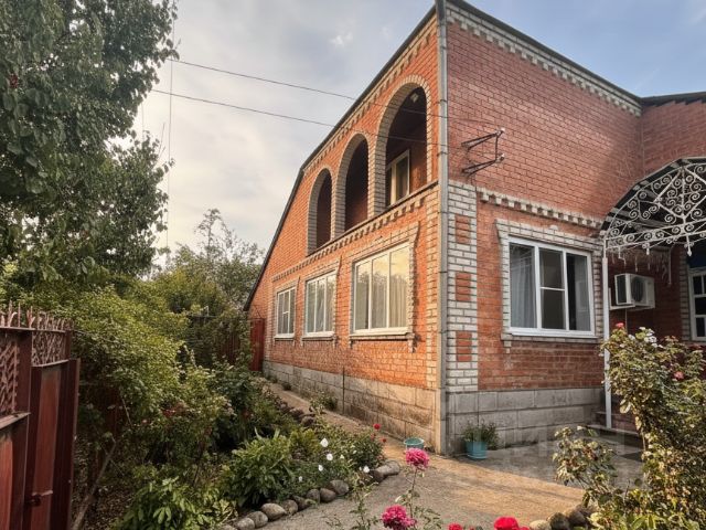 Продаётся кирпичный дом 190 м² на участке 15 соток (ИЖС) в ст. Темижбекская Отличный вариант для семьи: дом тёплый, ухоженный, с центральными коммуникациями, большим участком, гаражом и зарегистрированными хозпостройками. Подъезд к дому полностью по асфальтированной дороге, рядом вся инфраструктура — можно жить круглый год без деревенских компромиссов. Дом и планировка Дом 2-этажный, кирпичный, 2000 года постройки. 1-й этаж полностью жилой с косметическим ремонтом, 2-й этаж без отделки — можно сделать дополнительные комнаты/кабинет/гостевые под себя. Планировка 1 этажа: кухня; гостиная; отдельная обеденная комната; спальня; санузел (в доме, один); техпомещение/бойлерная (котлы + стиральная машина). Покрытия пола: гостиная и спальня — ламинат; кухня, коридор, обеденная комната — ламинат; бойлерная — плитка. Окна: в доме установлены пластиковые окна. Два выхода из дома: центральный + выход на заднюю часть участка (к беседке). Коммуникации и удобства газ заведён в дом; отопление — радиаторы (без тёплого пола); вода центральная заведена в дом + есть скважина (как дополнительный источник); канализация — септик (объём точно не знаем, долго не требовал откачки); интернет проведён. Участок, парковка, хозяйство Участок ровный, 15 соток, по периметру ограждён забором. Сделана забетонированная площадка минимум на 3 автомобиля + гараж на 2 машины — редкий и очень сильный плюс для семьи и гостей. На участке есть огород и большой сад: растут овощи и плодовые деревья, много зелени. Постройки (все зарегистрированы) На территории расположены: баня с большим предбанником; летняя кухня полностью оборудована + дополнительно отдельная пустая комната более 20 м² (можно под гостевую, кабинет, хранение, хобби и т.д.); две теплицы; Остаётся вся мебель и техника в доме. Кухня укомплектована техникой: посудомоечная машина, новый холодильник, духовой шкаф, новая микроволновка, газовая плита. Инфраструктура и расположение Всё необходимое рядом: детские сады: 200 м и ещё один в 1 км; школа: 1,5 км; аптека: 1 км; больница: 1 км; Пятёрочка, Магнит, рынок: 1 км; рядом есть стадион (отлично для детей/прогулок и спорта). Документы и условия сделки Дом и участок в собственности, межевание есть, обременений нет. Ипотека возможна (при одобрении банка). Торг обсуждается. Пишите/звоните — отвечу на вопросы и договоримся о просмотре.
