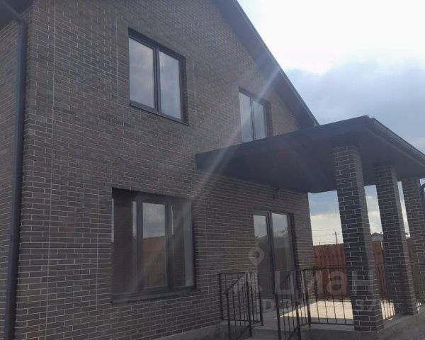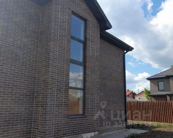 Дом возведен полностью из кирпича, высокий цоколь, металлопастиковые окна, кровля — металлочерепица, большая застекленная лоджия-веранда.