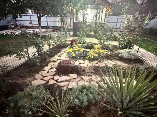 Есть хоз.блок, беседка с качелей. Немного посадок.