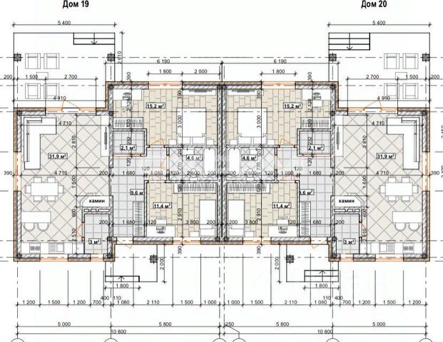 1 этаж: коридор, котельная, 3 спальни, санузел, кухня-гостиная с выходом на террасу.