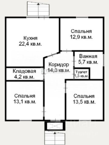 На втором этаже дома площадью 123,1 кв. м. : четыре спальни, две гардеробные комнаты, раздельный санузел, бытовая комната, просторный коридор с выходом на лестницу.