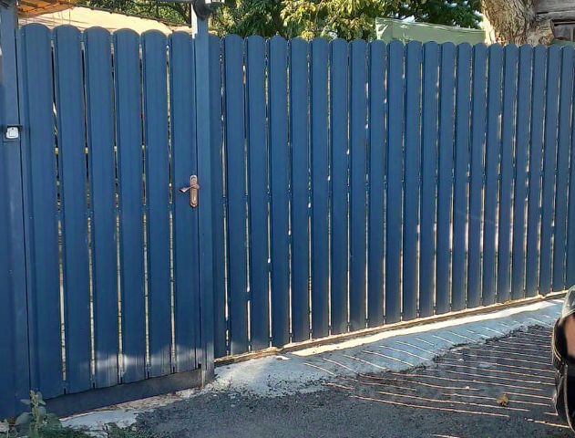 Подъезд к дому асфальтирован, дом угловой (по фасаду 35.6 м), металлический забор.
