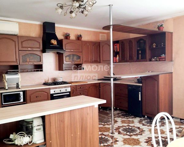 На кухне из кирпича 15 м2 газовая плита, есть кладовая и подпол для хранения продуктов.