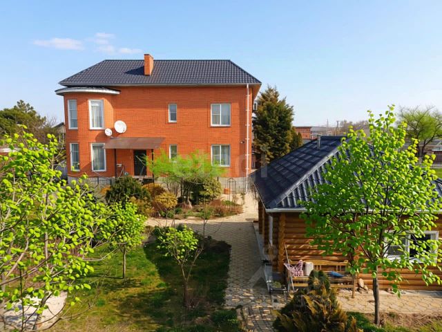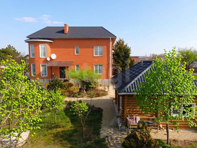 Во дворе две беседки детская площадка, клумбы, курятник, два навеса под автомобили, теплица из поликарбоната 3х6х2, площадка под бассейн, хороший плодоносящий сад (яблони, груши, черешня, слива, персик, вишня, абрикос, гранат, киви, кизил, миндаль, фундук, инжир, виноград, малина, крыжовник, смородина, клубника). Часть двора выложена тротуарной плиткой, часть заасфальтирована.