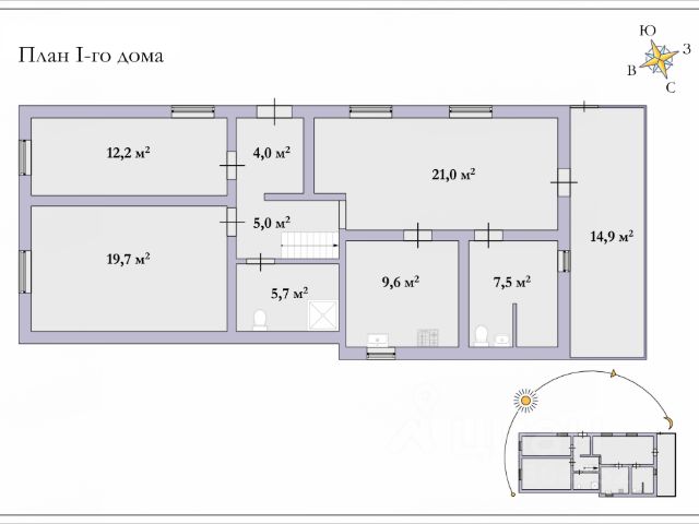 - трех изолированных спален -12,2+19,7+7,5 с персональным санузлом ( комнату можно отдельном использовать как гостевую , как прачечную , как детскую )