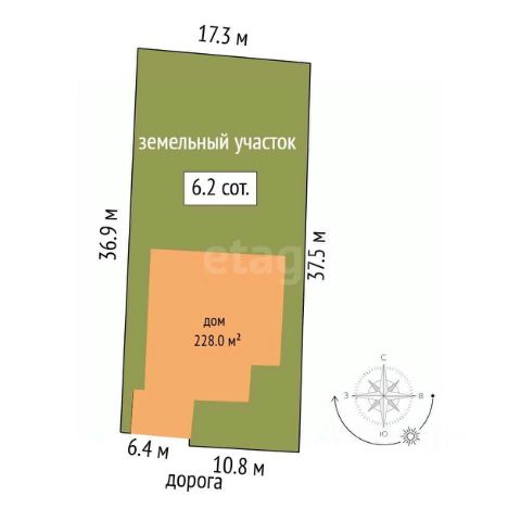 6 соток, ровный и правильной прямоугольной формы, с шириной фасада 20 м., глубина 30 м.