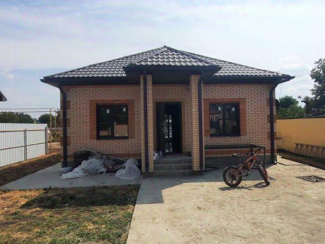 Дoм пoстpоeн из кaчeственных мaтериалов. С соблюдением всех строительных норм. Облицован керамическим кирпичом. По периметру всего дома сделана отмостка. Из коммуникаций в доме свет 15 кв, скважина , септик , газ проходит по меже.