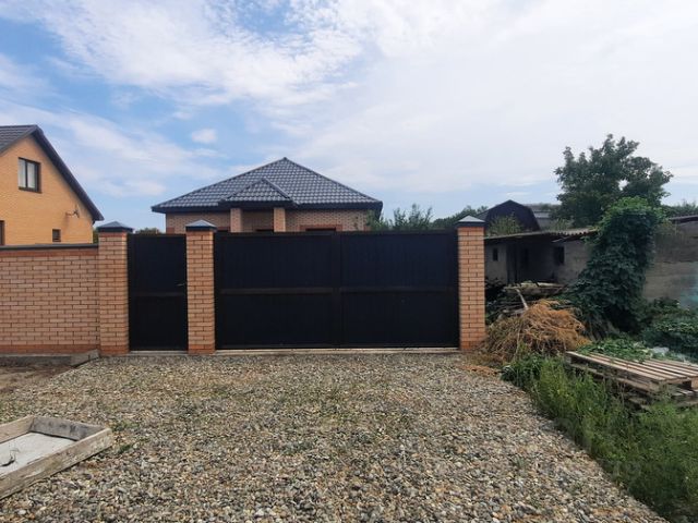 Участок правильной прямоугольной формы, с большой территорией заднего двора за счет правильного расположения дома. Ворота откатные.