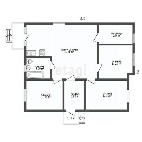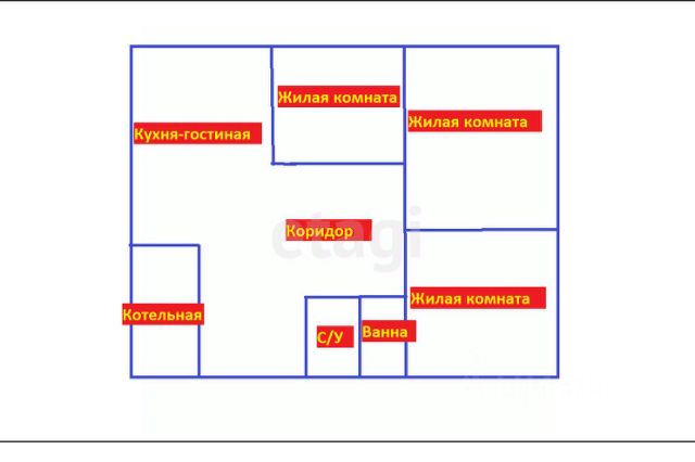 ПЛАНИРОВКА ДОМА: прихожая, куxня-гoстиная, 3 спaльни, теxпoмещeние-прaчечная
