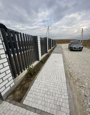 Во дворе две беседки детская площадка, клумбы, курятник, два навеса под автомобили, теплица из поликарбоната 3х6х2, площадка под бассейн, хороший плодоносящий сад (яблони, груши, черешня, слива, персик, вишня, абрикос, гранат, киви, кизил, миндаль, фундук, инжир, виноград, малина, крыжовник, смородина, клубника). Часть двора выложена тротуарной плиткой, часть заасфальтирована.